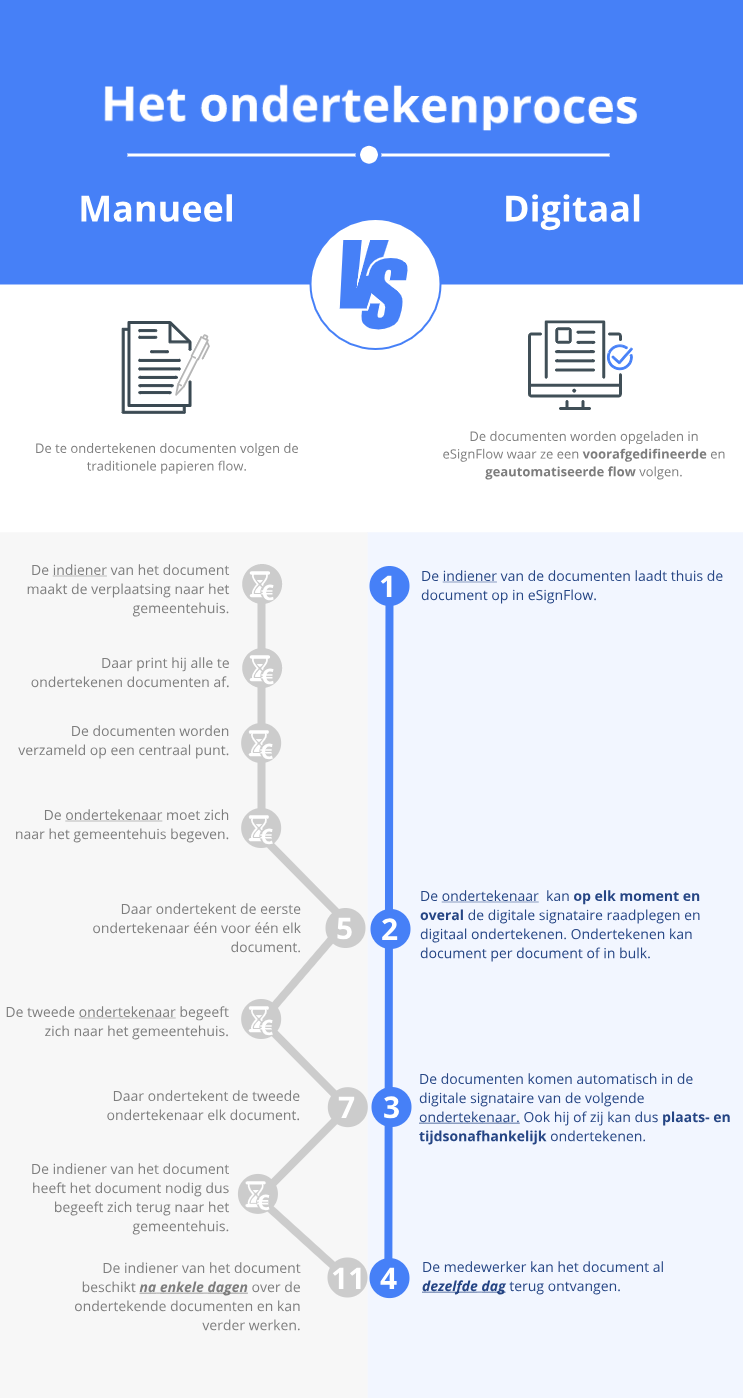 Infographic: het verschil tussen de manuele en digitale ondertekenflow wanneer je werkt van thuis.